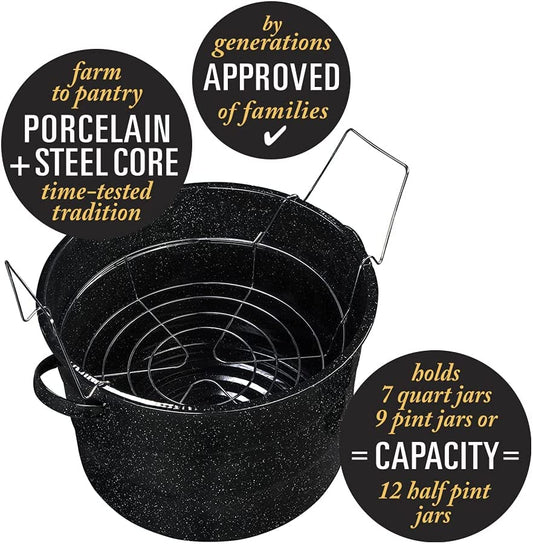 Granite Ware Enamel on Steel 21.5-Quart Water Bath Canner with lid & Jar Rack, Speckled Black