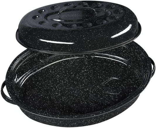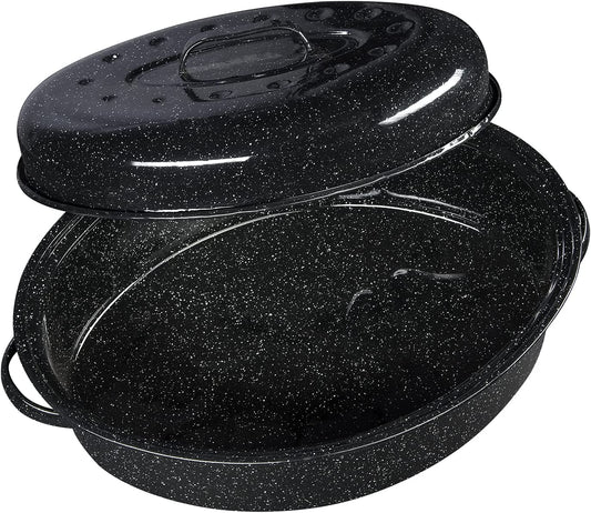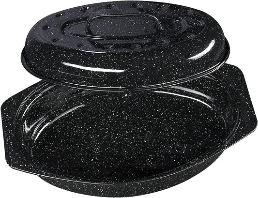Granite Ware 15 lb. Capacity (18 in.) Covered Oval Roaster, Speckled Black Enamel on Steel