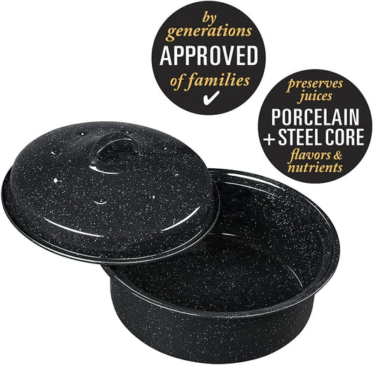 Granite Ware 3 lb. Capacity Covered Round Roaster, Speckled Black Enamel on Steel